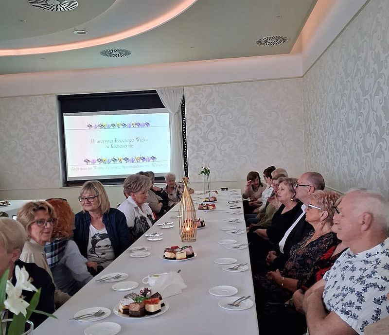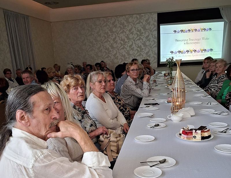 Trochę z poślizgiem, spowodowanym problemami z Facebookiem Zarząd UTW przedstawia relację z " Podsumowania działalności UTW za rok 2024" Na spotkaniu gościliśmy Burmistrza Krotoszyna panią Natalię Robakowską, Przewodniczącego Gminnej Rady Seniorów pana Juliana Joksia, Dyrektor Krotoszyńskiej Biblioteki Publicznej panią Ewę Bukowską, pana dr. Macieja Hoffmanna, który jest członkiem honorowym UTW, Koordynatora projektów z ramienia Urzędu Miasta panią Joannę Woltmann, Koordynatora projektów z CKI panią Zuzannę Nadzieję, oraz przedstawicielkę PCPR panią Martę Kowalczyk. Prezes UTW Barbara Kończak przedstawiła działania Zarządu na rzecz organizacji i jej członków w 2024 roku.. Następnie przekazała plan zadań na rok przyszły. Drugą część spotkania stanowiło szkolenie Nowoczesny Senior z zakresu nowych technologii, możliwości, ale również zagrożeń wynikających z ich korzystania. Zarząd wraz z obecnymi na sali uczestnikami spotkania wyraził podziękowania za dotacje i wkład pracy gości na rzecz sprawnego działania naszej organizacji. Podsumowaniem było wystąpienie pani Burmistrz, w którym oprócz życzeń Świąteczno- Noworocznych przybliżyła nam działania Miasta i Gminy na rzecz jej mieszkańców, oraz poinformowała o zwiększeniu dotacji dla UTW , za co jeszcze raz serdecznie dziękujemy. Zdjęcia wykonali : Aleksandra Życka i Andrzej Chmielarz